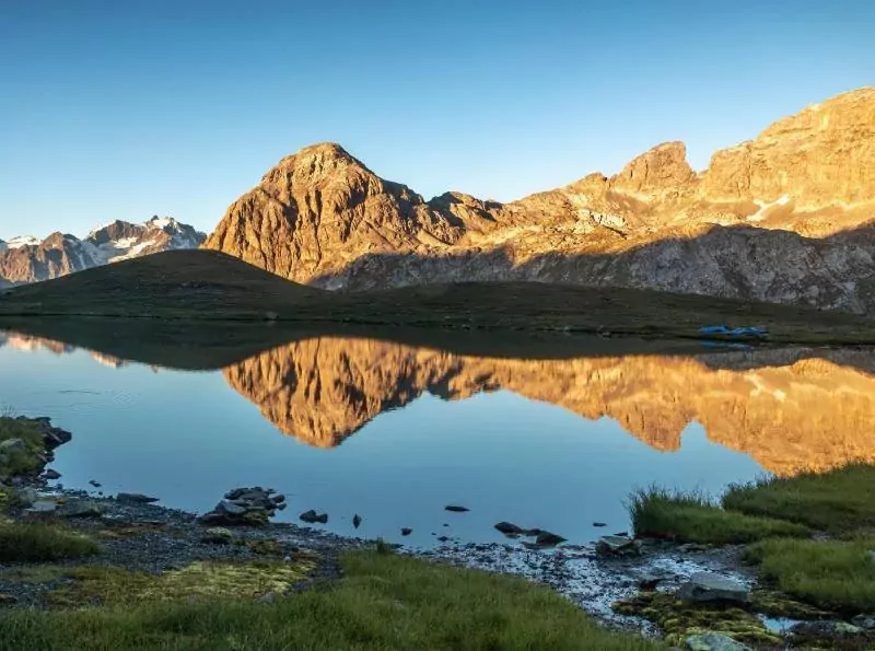 Tijdens deze tocht ontdek je een van de mooiste berggebieden van de Franse Alpen. Bij de start van de tocht slingeren de paden langs kristalheldere bergmeren en door bloemrijke alpenweiden. Naarmate je hoger komt, verandert het landschap: het groen maakt plaats voor ruige rotsen, gletsjerkommen en sneeuwwitte bergtoppen. Hier begint het echte werk! De beklimming van de Mont Thabor is er één om nooit te vergeten. Tijdens deze avontuurlijke klim geniet je onderweg van spectaculaire uitzichten die steeds indrukwekkender worden. Op de top ontvouwt zich een panorama over drie landen, zo groots dat je er even stil van wordt. De afdaling brengt je naar de beschutte Étroite-vallei, waar de sfeer ineens heerlijk Italiaans aanvoelt.