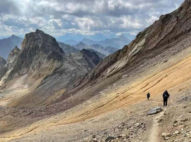 De laatste wandeldag begint met een klim langs een krachtige beek, richting de oude ijzermijnen van Blanchet. Al snel doemt een imposante gletsjerwand op, waar een waterval met donderend geraas naar beneden stort. Dit indrukwekkende natuurtafereel laat je zeker even stilstaan. Via een kronkelend pad klim je gestaag omhoog naar de Vallon-pas (2.465 m). Vanaf hier ontvouwt zich een prachtig uitzicht over de Clarée-vallei. De afdaling voert je rustig terug naar Névache. Met elke stap komt het dorpje dichterbij, en daarmee ook het einde van deze onvergetelijke huttentocht.