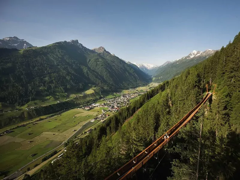 Klaar voor de eerste wandeling van jullie vakantie? Vanaf het middenstation van een bergbaan leidt de route over zonnige berghellingen richting Neustift, met onderweg adembenemende uitzichten over het Stubaital. Een absoluut hoogtepunt is de spectaculaire hangbrug van 110 meter lang, die hoog boven het dal zweeft en een onvergetelijk uitzicht biedt. Onderweg wachten knusse, traditionele almen waar je heerlijk in de zon kunt pauzeren.