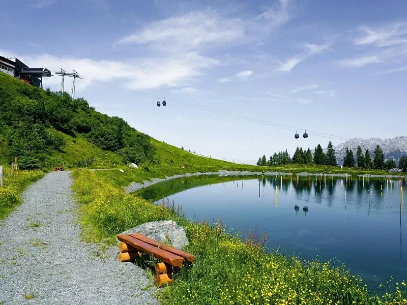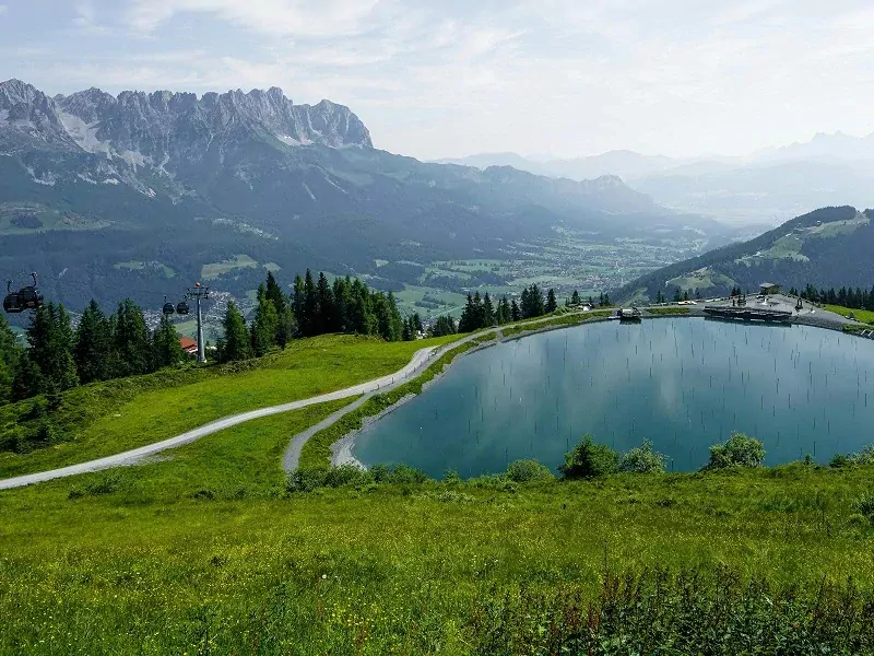 Deze afwisselende wandeling combineert natuur, beleving en een vleugje televisiegeschiedenis. Vanuit het dorpscentrum wandel je langs het iconische Bergdoktorhaus en klim je geleidelijk door het bosrijke landschap omhoog richting de Rübezahl-Alm. Daar begint een van de hoogtepunten: Oostenrijks langste beeldenpad, gevuld met fantasierijke houtsnijwerken, dat uitkomt bij een sfeervolle berghut. Op de top van de Hartkaiser (1.530 m) wacht Ellmi’s Zauberwelt: een magisch avonturenpark voor kinderen én een natuurrijke ontdekkingstocht voor volwassenen. Wie wil, kan (een deel van) de route ontspannen met de gondel afleggen.