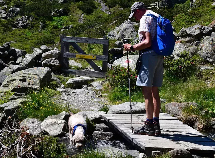 Samen met je hond wandel je langs bruisende bergbeken en door schaduwrijke bossen naar een van de meest indrukwekkende watervallen van het Stubaital. Naarmate je de Grawa-waterval nadert, wordt de lucht merkbaar koeler en vochtiger, een verademing voor je viervoeter op warmere dagen. Vanaf de uitkijkplatforms beleef je het natuurgeweld van dichtbij, terwijl het goed begaanbare pad deze wandeling ook voor honden bijzonder geschikt maakt.